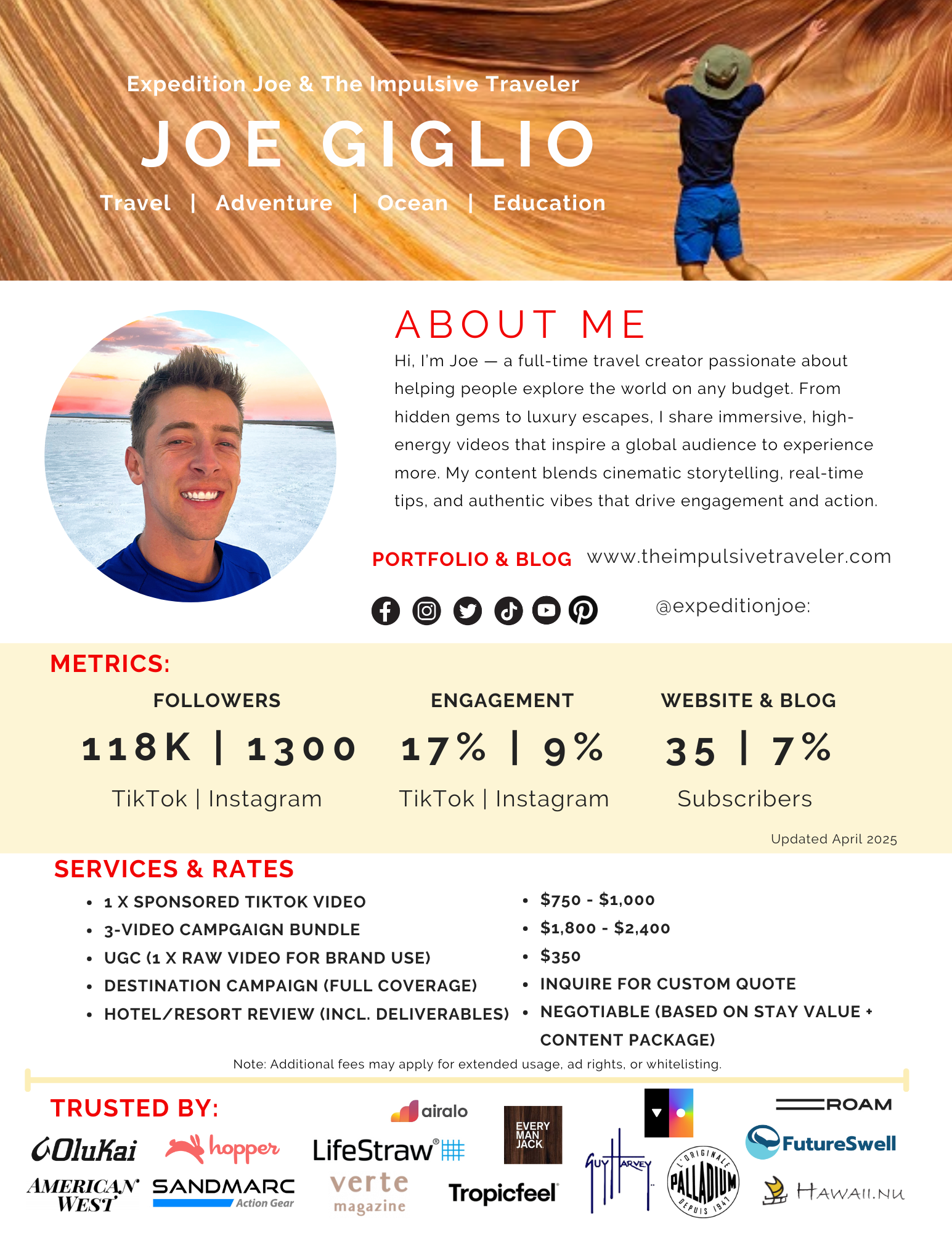 What’s up! My name’s Joe, I travel around the world living out of a backpack and I’m going to help you learn how to travel more for less. Explore my content if you like extreme sports, hiking, off-the-beaten path, culinary experiences, fast travel, beaches, wildlife, and more!