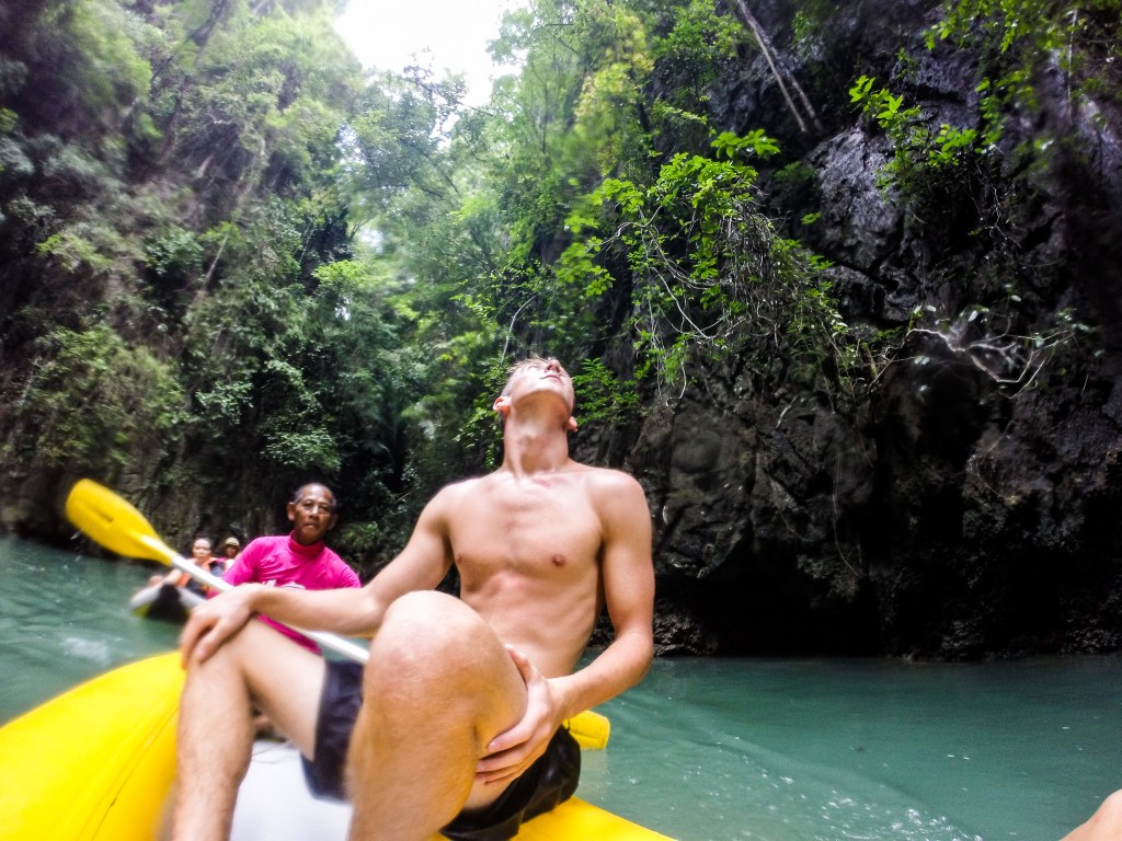 I learned very quickly on this trip that the Thai people have a great sense of humor, and be prepared because they are going to use it. When I saw our tour included a show I envisioned like a cultural performance, maybe some children or a play? Wow, I was so wrong. As I reveled in the endorphins from jumping and swimming in the water, stuffing my face with the included meal on the upper deck, a shimmer from down the stairs caught my eye. I looked closer and my mouth dropped when I saw our kayak guide wearing a shiny sequin dress, wig, and more makeup than any of the girls I was with. I lost my mind, and was like, “we have to get off this boat right now”.